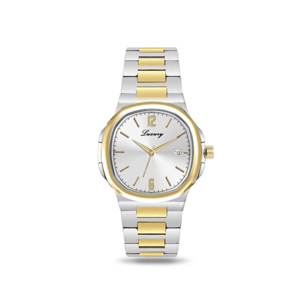 ساعة رجالية بسير ستيل بلون فضي وذهبي