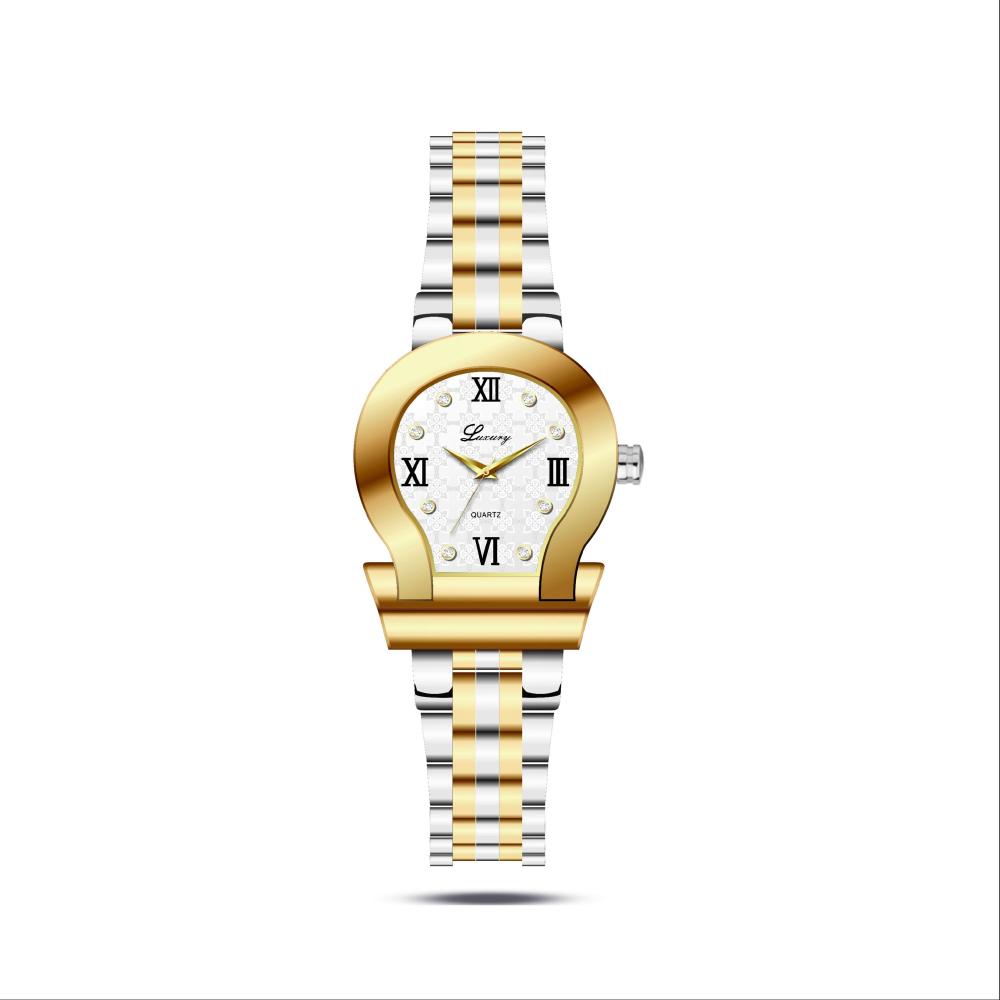 ساعة نسائية بتصميم ملفت بلون ذهبي والفضي