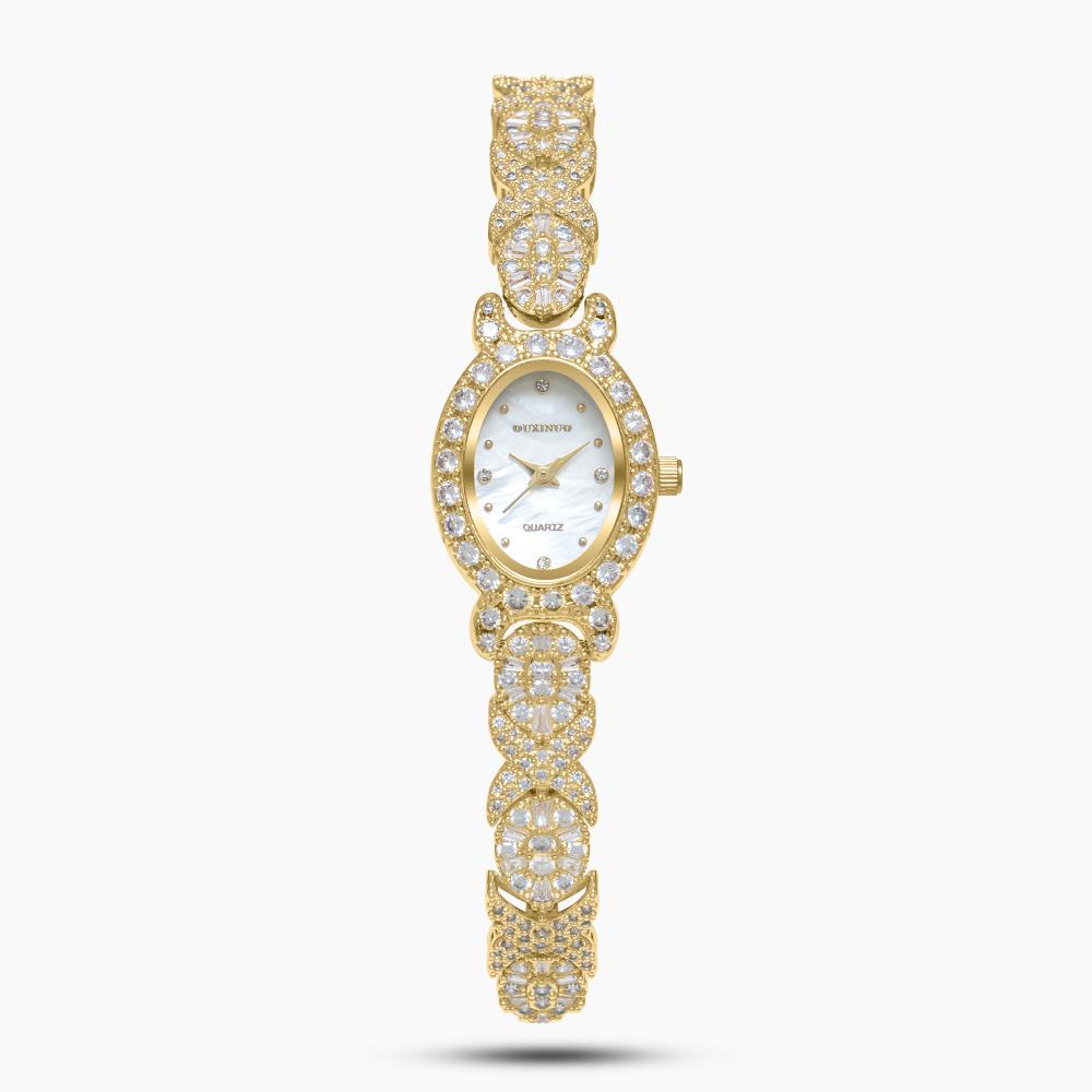 ساعة سهرة زركون باللون الذهبي
