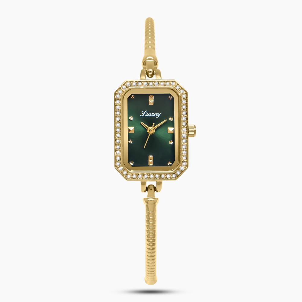 ساعة نسائية باللون الذهبي ميناء اخضر