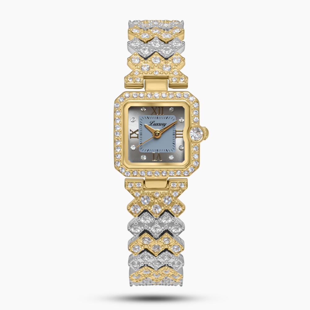 ساعة نسائية فصوص كريستال باللون الذهبي والفضي