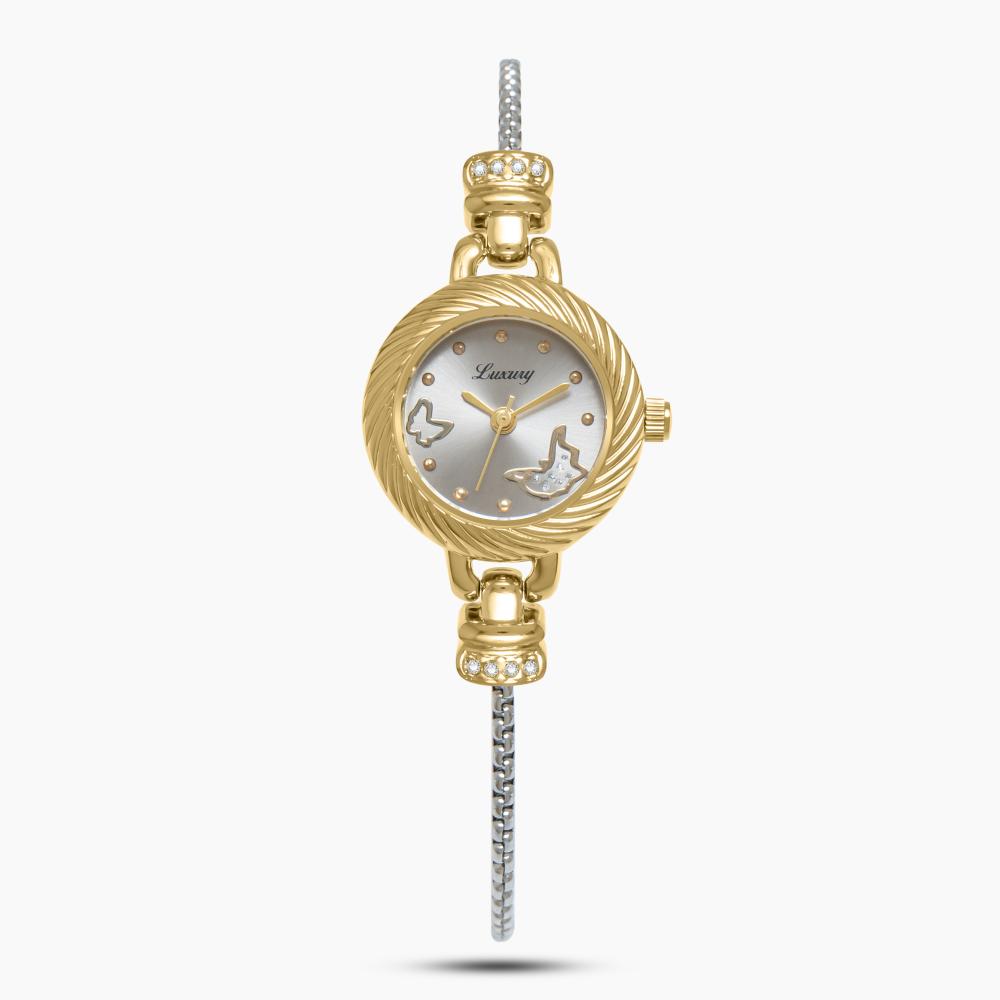ساعة نسائية فري سايز باللون الفضي والذهبي
