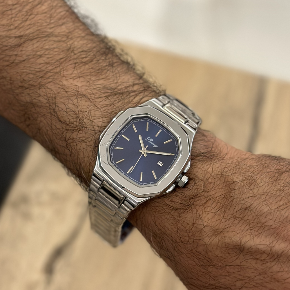 - يتميز سوار الساعة بأنه مصنوع من الستانلس ستيل عالي الجودة لا يسبب لك التعرق.
