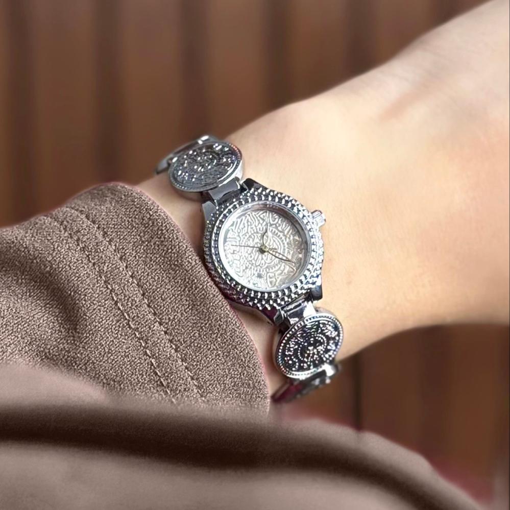• السوار: باللون الفضي وتصميم عصري مريح، مصنوع من الفولاذ المقاوم للصدأ الذي يتميز بخفة وزنه ومقاومته العالية للتآكل والصدأ، سهل تقصير الساعه على حجم معصمك