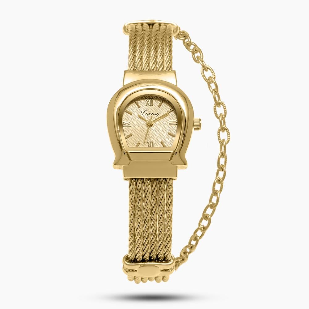 ساعة نسائية بتصميم انيق باللون الذهبي