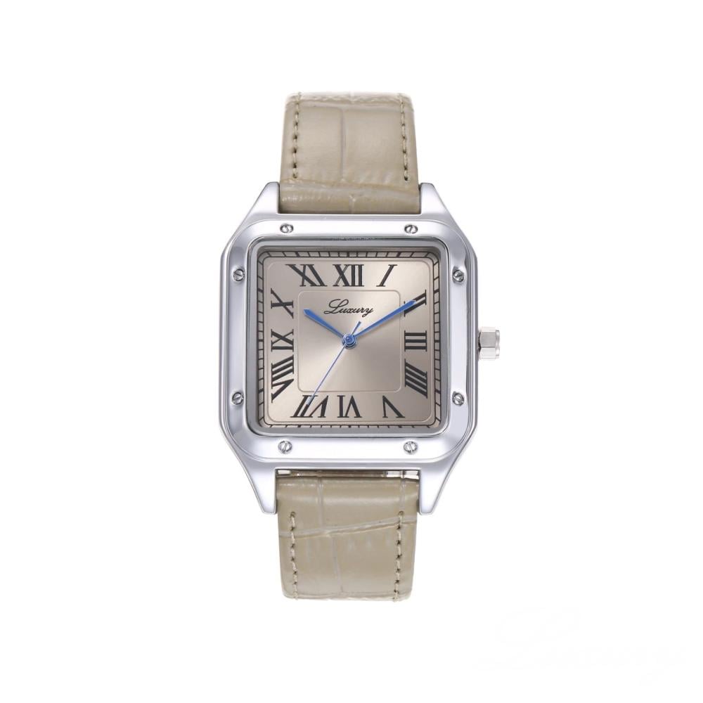 ساعة رجالية بسير جلد بلون بيج