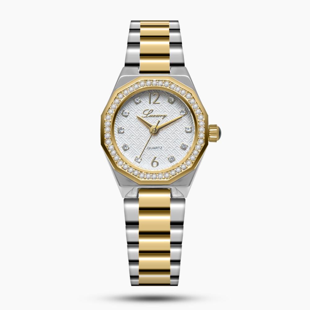 ساعة نسائية بتصميم ملفت ذهبي والفضي